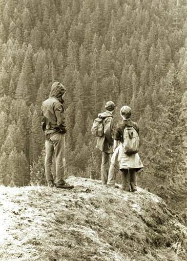 The 1983 expedition reached Split Falls using 15 minute USGS maps that provided only a general idea of where to depart the Salmon River trail and descend into the canyon. We left the trail at this point, shortly after passing Goat Creek and a second tributary canyon. These photos are ©Tom Kloster 1983, and may not be reproduced or used without permission Next Image from the March 1983 Expedition > < Back to Index Page